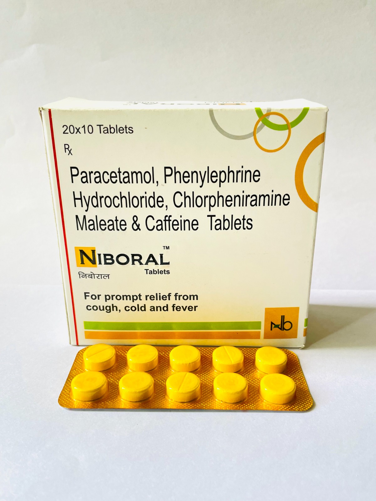 Paracetamol 500mg+Phenylepherine 10 mg+cpm 2mg +caffeine 16 mg